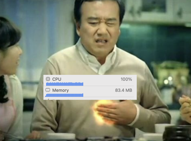 연결을 해주자 화면이 나타남과 동시에 메모리와 CPU가 폭발하기 시작했습니다…^^